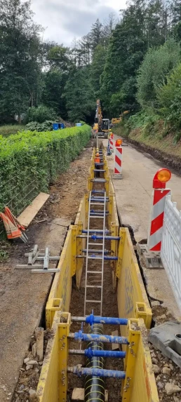 In den Jahren 2024 und 2025 wurde gemeinsam mit den Partnerfirmen SPIE aus Iserlohn und Lehnen aus Lennestadt eine Gashochdruckleitung auf über 4 km erneuert. Dabei wurden 2 Steilhänge überwunden sowie die A 45 in einem geschlossenen Bohrspülverfahren unterquert.